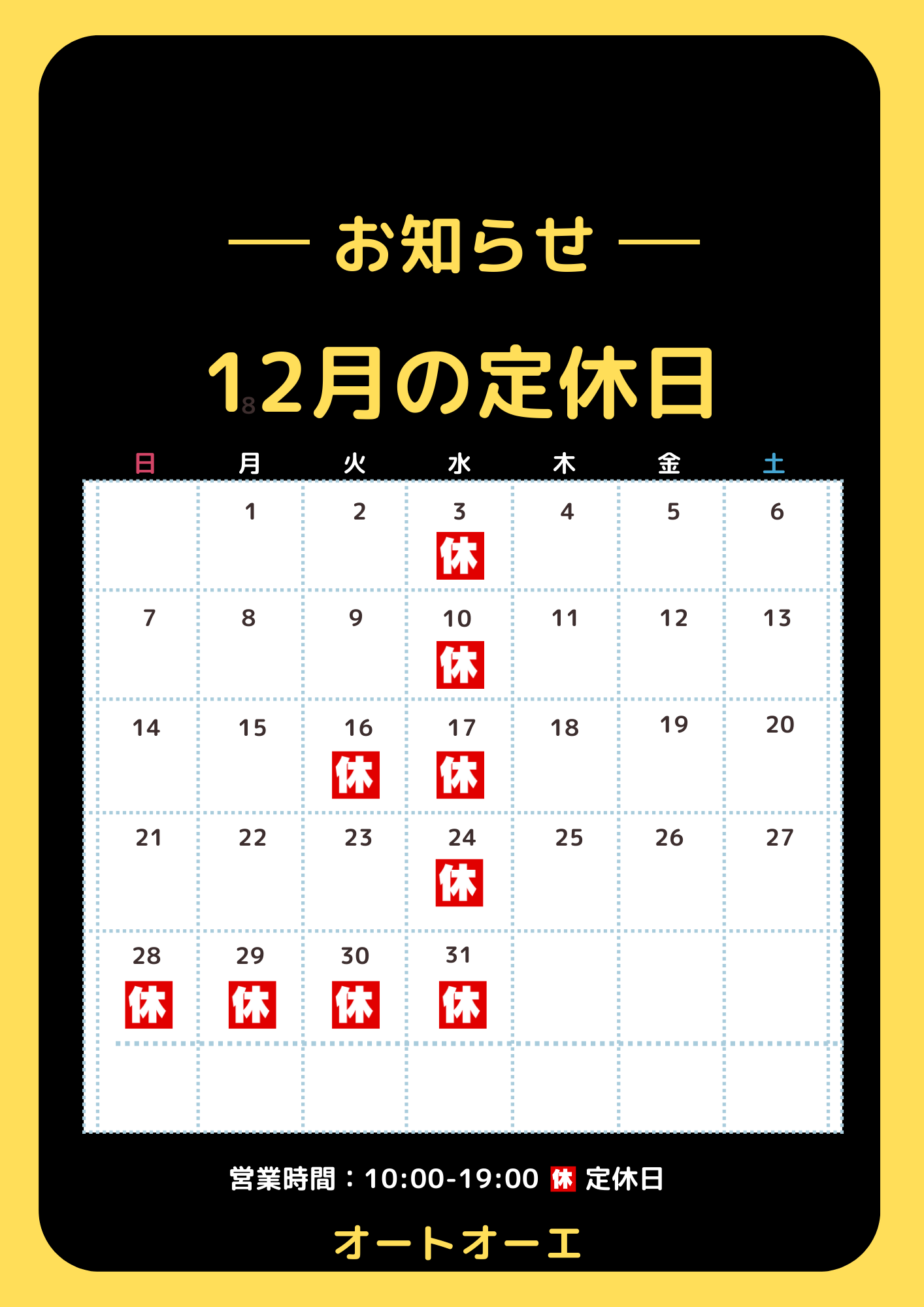 2025年12月28日(日)~2026年1月4日(日)休業となります。